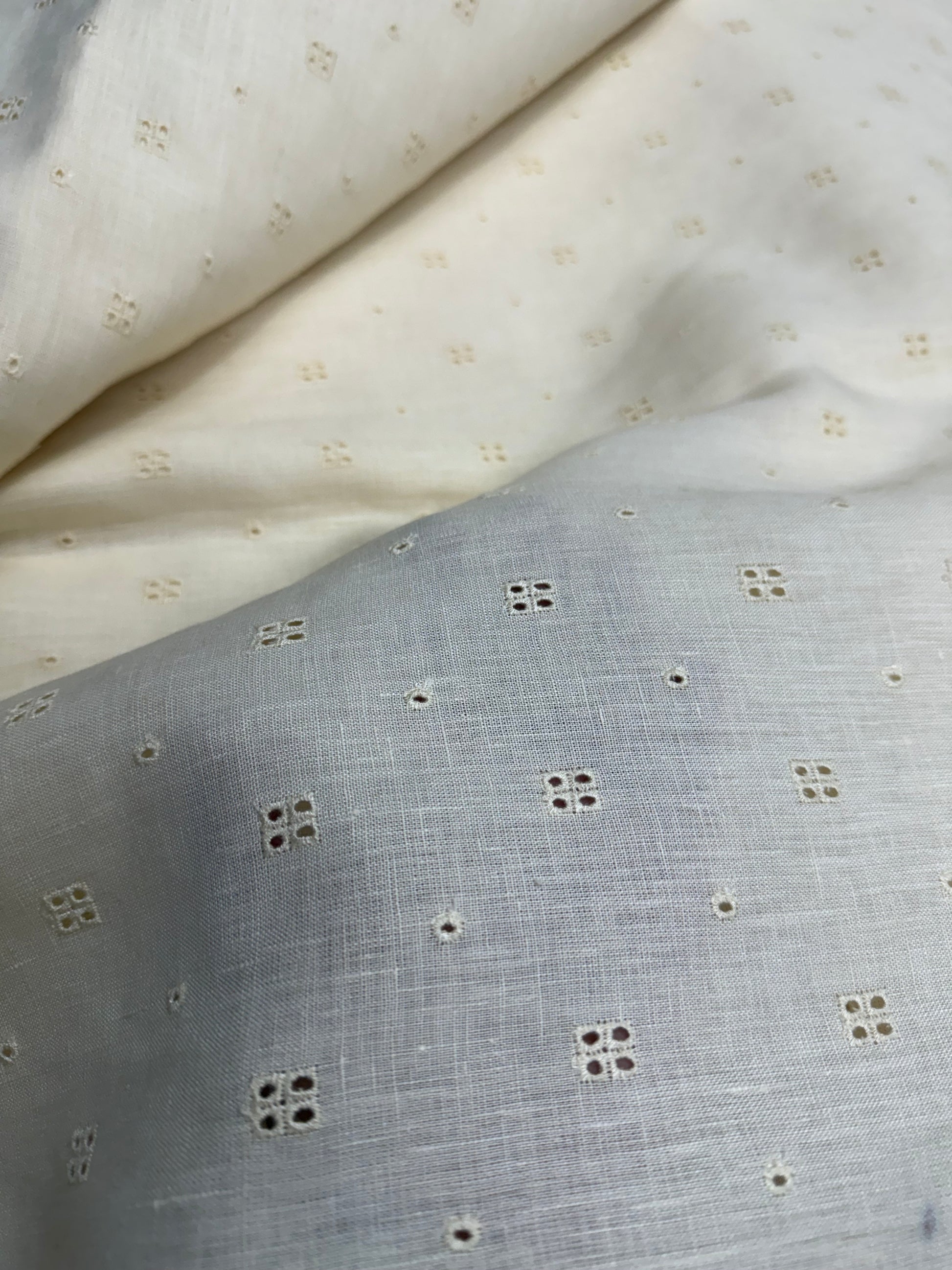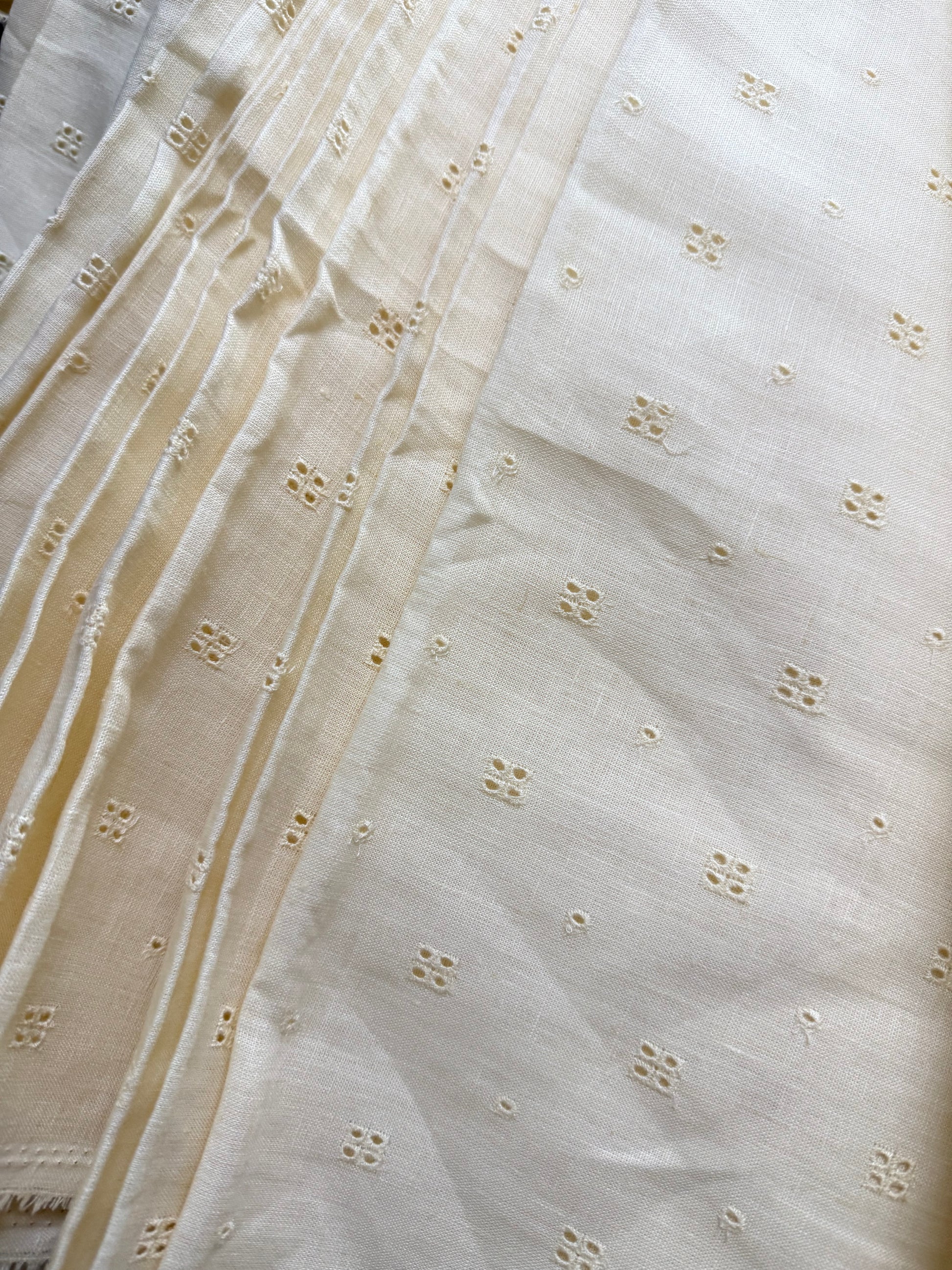 Buy Linen Ivory Hakoba Square Work Embroidery Fabric