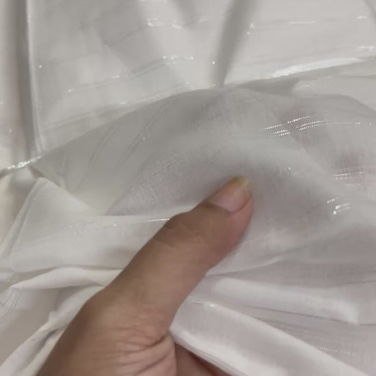 Buy Mul Cotton Bleach White Base Lurex Stripe Fabric