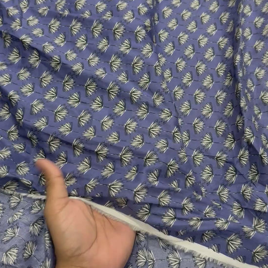 Buy Mul Cotton Blue Base Fan Flower Printed Fabric
