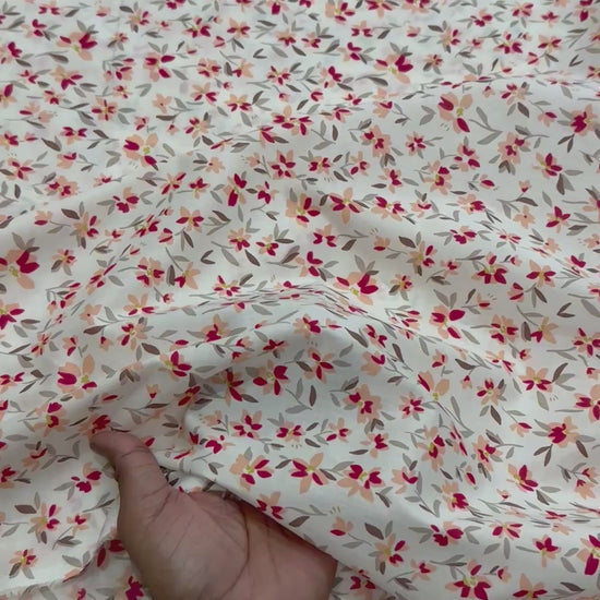Buy Mul Cotton Red Peach Summery Flower Printed Fabric