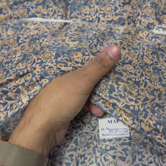 Buy Mul Cotton Jacobean Dark Blue Printed Fabric