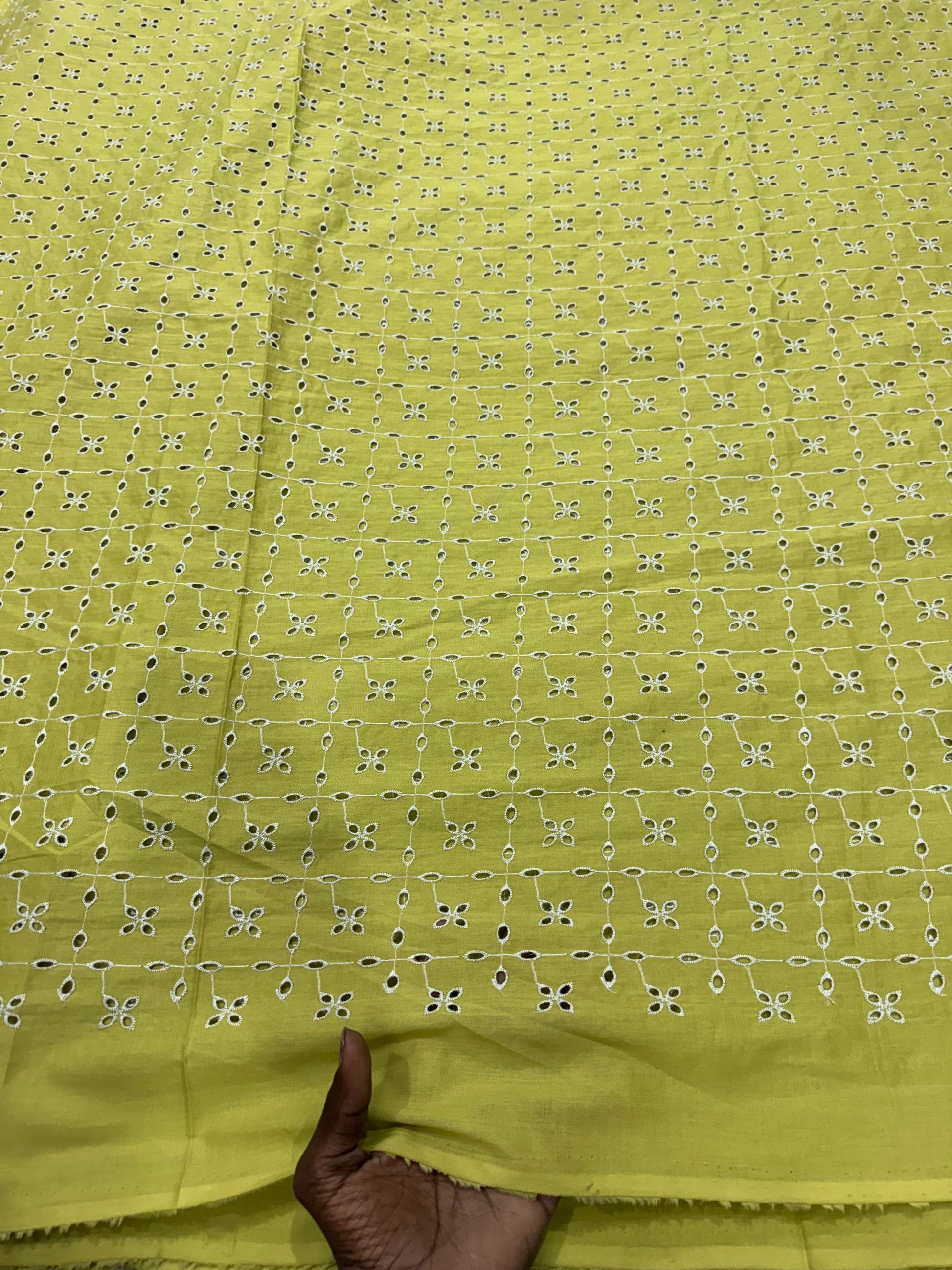 Poplin chikan embroidered fabric exudes elegance and tradition. Made from breathable cotton, it showcases intricate chikan embroidery, which is celebrated for its delicate patterns and exquisite craftsmanship. Perfect for a variety of apparel, from casual to formal wear, this fabric brings a touch of sophistication and cultural charm to any garment or project.