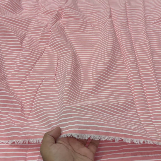 Buy Premium Cotton Arvind Mill Pinkish Tint White Stripe Printed Fabric