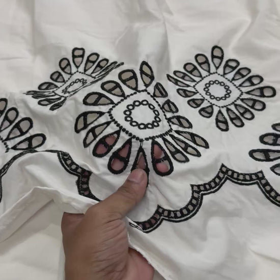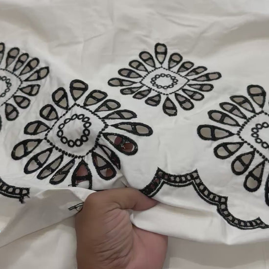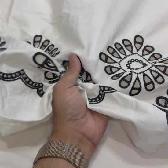Cotton chikan embroidered fabric exudes elegance and tradition. Made from breathable cotton, it showcases intricate chikan embroidery, celebrated for its delicate patterns and exquisite craftsmanship. Perfect for a variety of apparel, from casual to formal wear, this fabric brings a touch of sophistication and cultural charm to any garment or project.