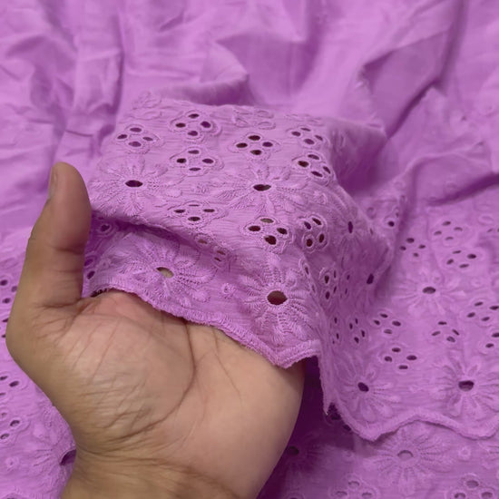 Cotton chikan embroidered fabric exudes elegance and tradition. Made from breathable cotton, it showcases intricate chikan embroidery, celebrated for its delicate patterns and exquisite craftsmanship. Perfect for a variety of apparel, from casual to formal wear, this fabric brings a touch of sophistication and cultural charm to any garment or project.