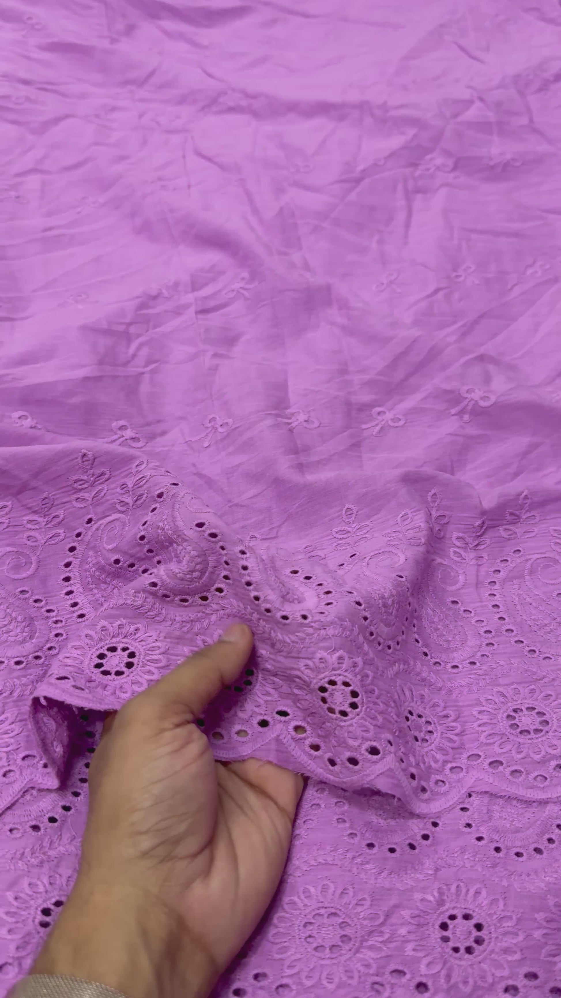 Cotton chikan embroidered fabric exudes elegance and tradition. Made from breathable cotton, it showcases intricate chikan embroidery, celebrated for its delicate patterns and exquisite craftsmanship. Perfect for a variety of apparel, from casual to formal wear, this fabric brings a touch of sophistication and cultural charm to any garment or project.