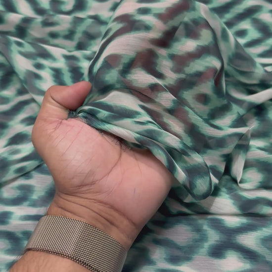 Buy Viscose Chiffon Olive Green Ikkat Like Pattern Printed Fabric
