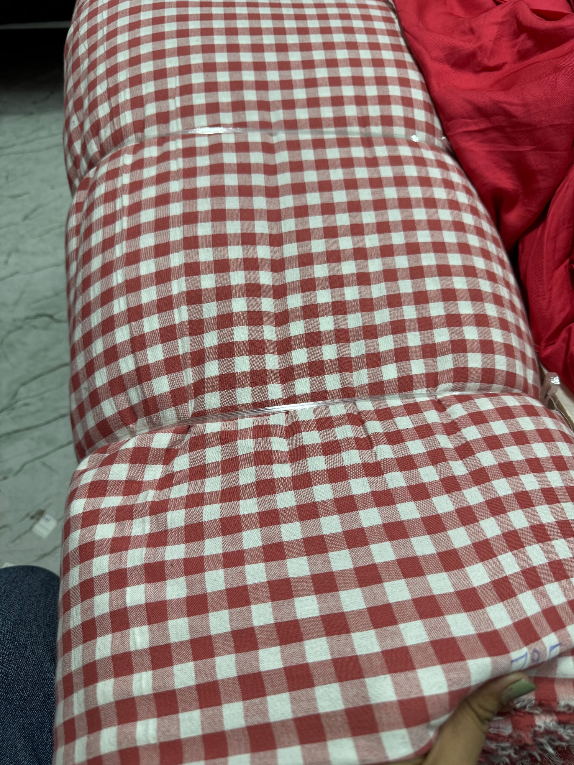 Seersucker is a lightweight cotton fabric with alternating crinkled and smooth vertical stripes that never needs ironing. The construction of the fabric is what makes this fabric perfect for warmer temperatures by having less touch points against the skin.